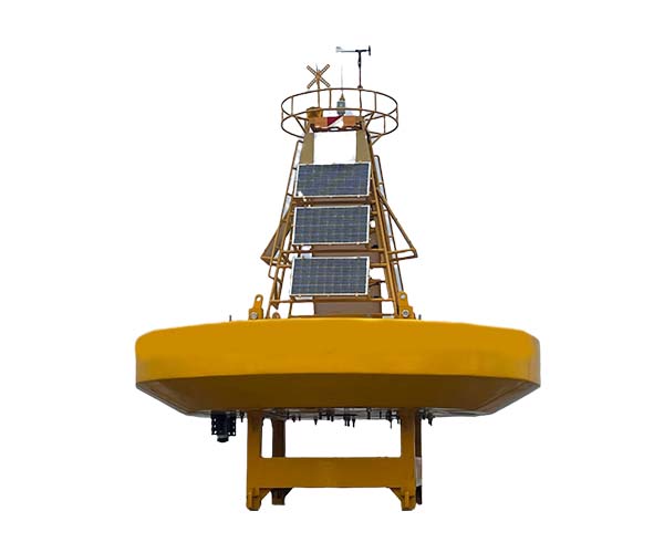 六米中型海洋环境监测浮标,是能够自动采集、传输海上水文气象资料的圆盘型浮标。大型浮标具有安全性好、稳定性高、有效利用面积和容积大、供电功率大等特点。直径6米圆盘型浮标具有抗恶劣环境强、容量大、工作环境好、寿命长、在位时间长、抗人为破坏能力强等特点,其结构特点主要是:机械强度高、有效空间大、造型简单、随波性优、稳定性好等。
